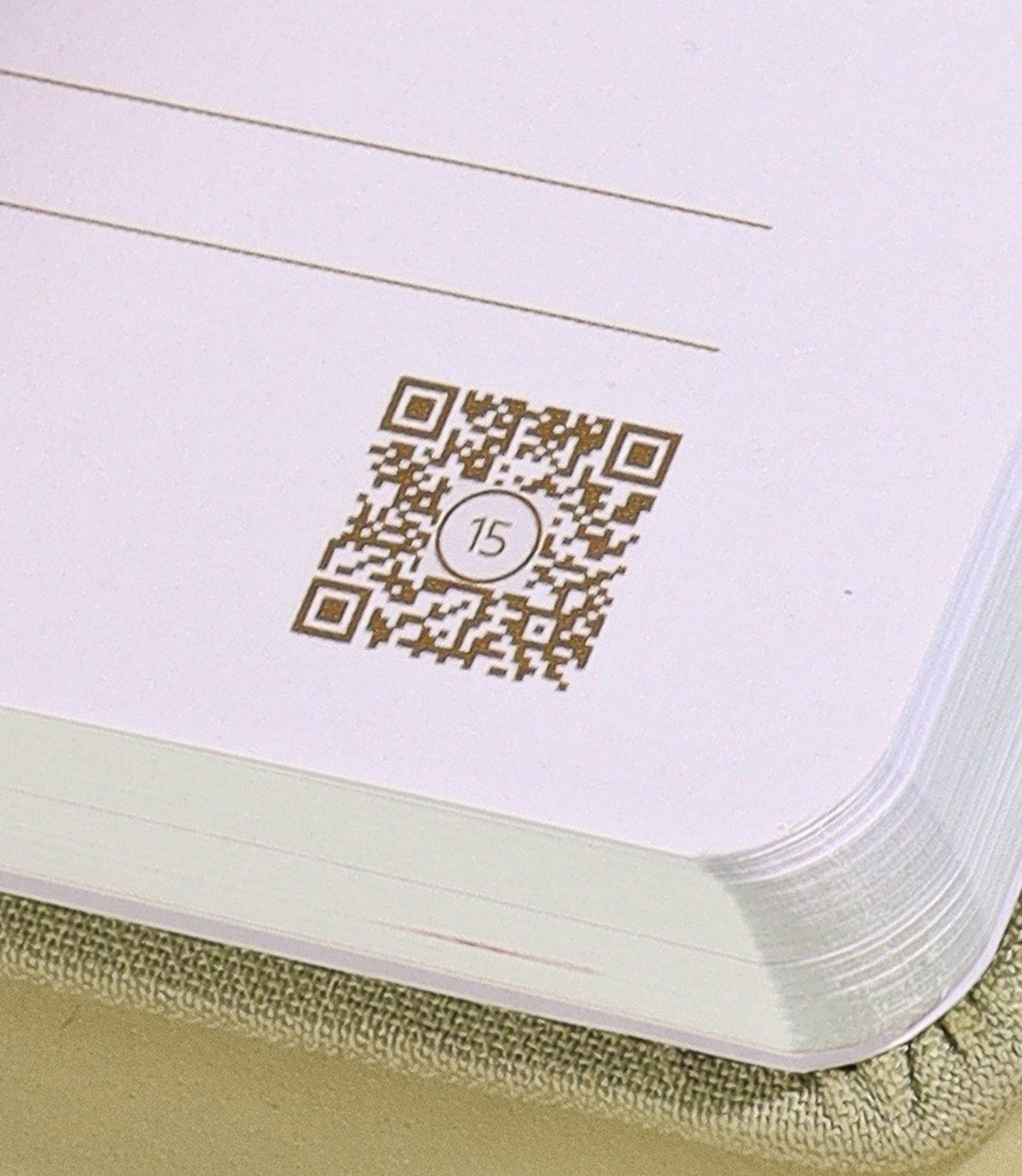Provided you have the Journalfy travel journal app installed, the QR codes located within the journal will prompt the camera within the app to open when scanned. You can then save a photo of your physical journal, add photos and even share with family.