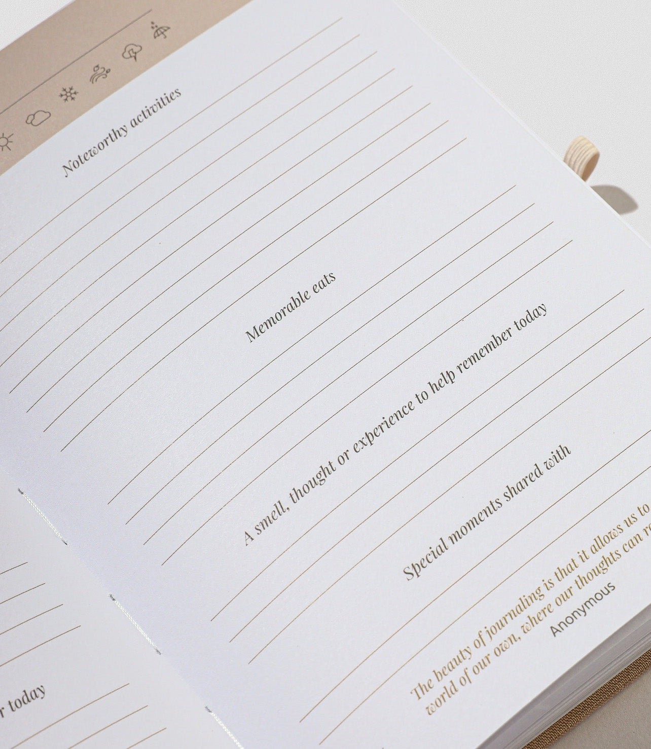 The blank lined pages allow you to capture certain days or experiences in more detail. You can also use this section to draw, make extra notes or to accommodate any sudden bursts of creative inspiration.