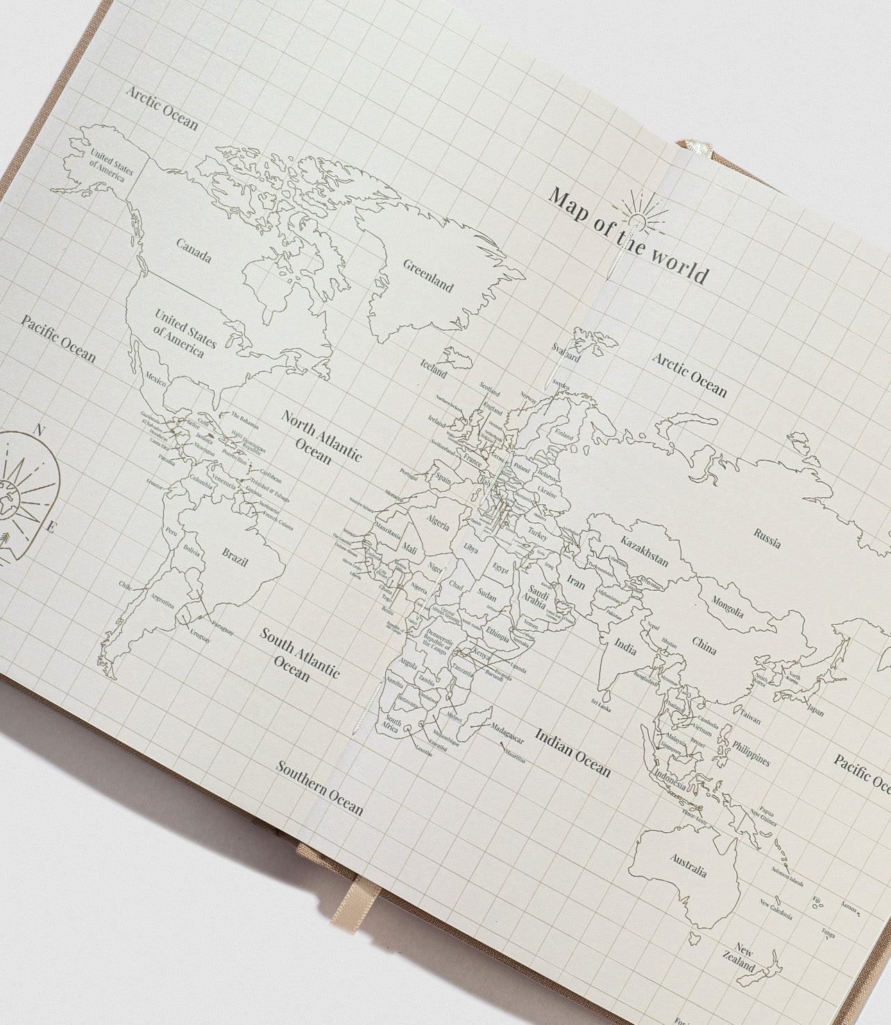 The world map in the journal allows you to mark down places you've visited, as well as places you're manifesting to visit next.