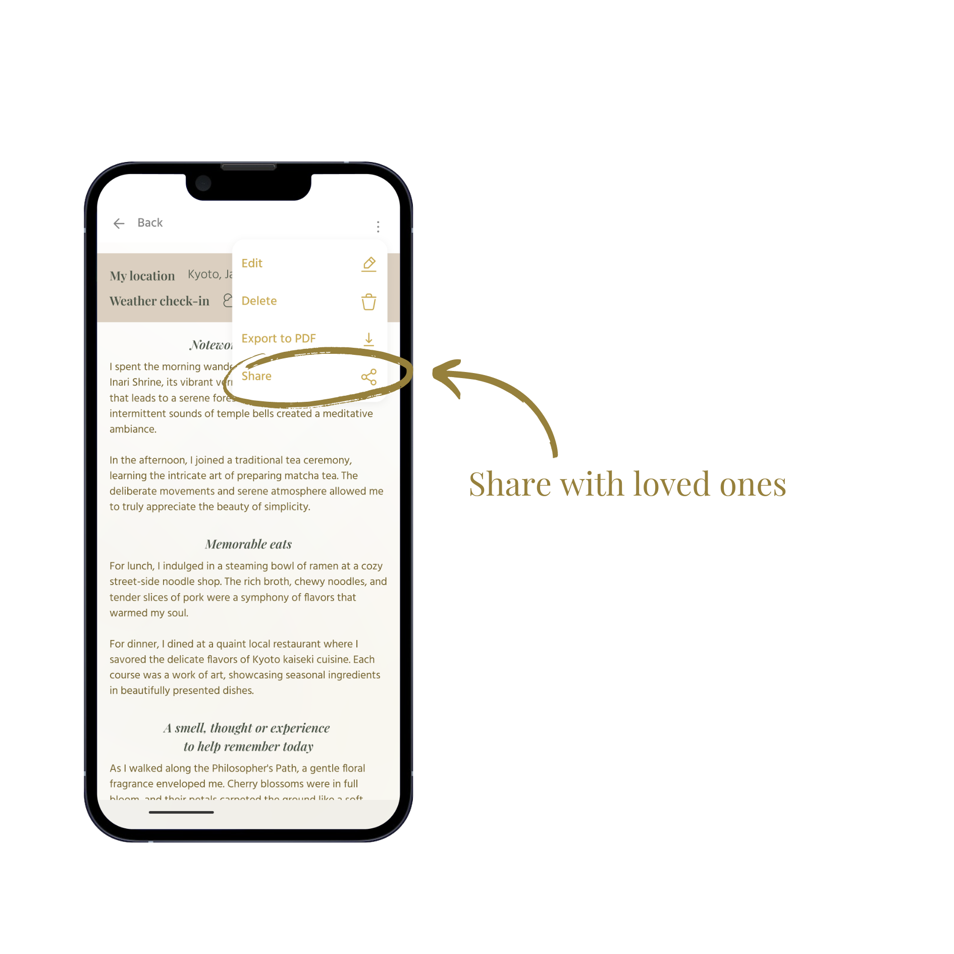 Once you’ve created a journal entry, you can share a link to it with friends or family so they feel a part of the adventure, follow along with your travel narrative, and share photos collectively.