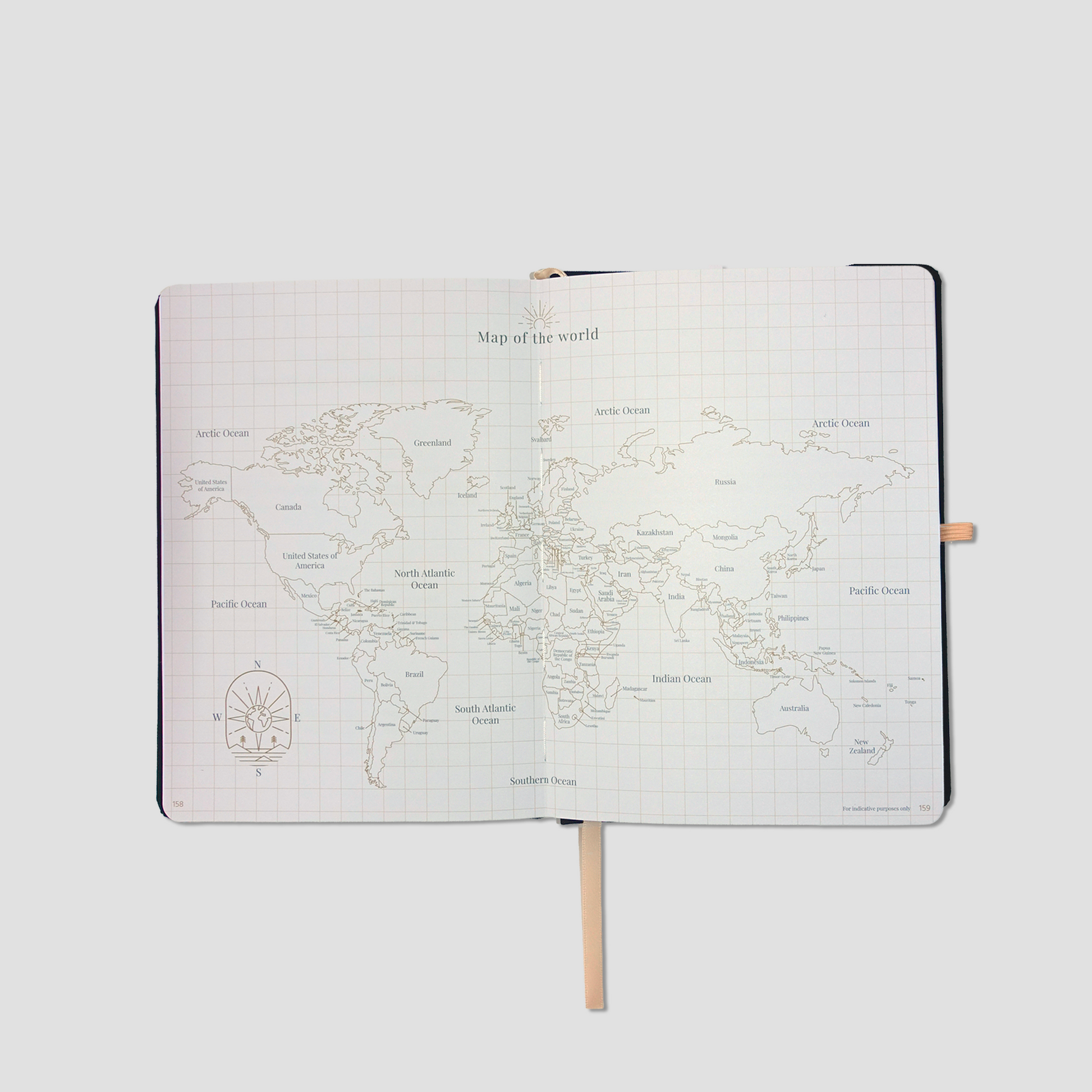 Complete with a map of the world, an inside pocket, elastic pen holder, page marker ribbon, and elastic closure, the Journalfy Freestyle Journal is thoughtfully designed for travellers, creatives, and anyone who loves to document life’s moments in their own way.